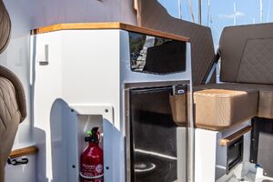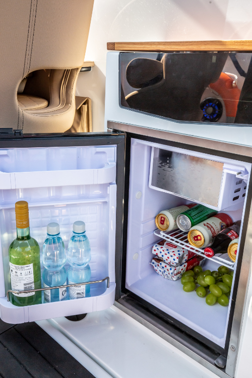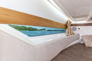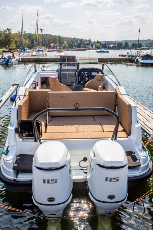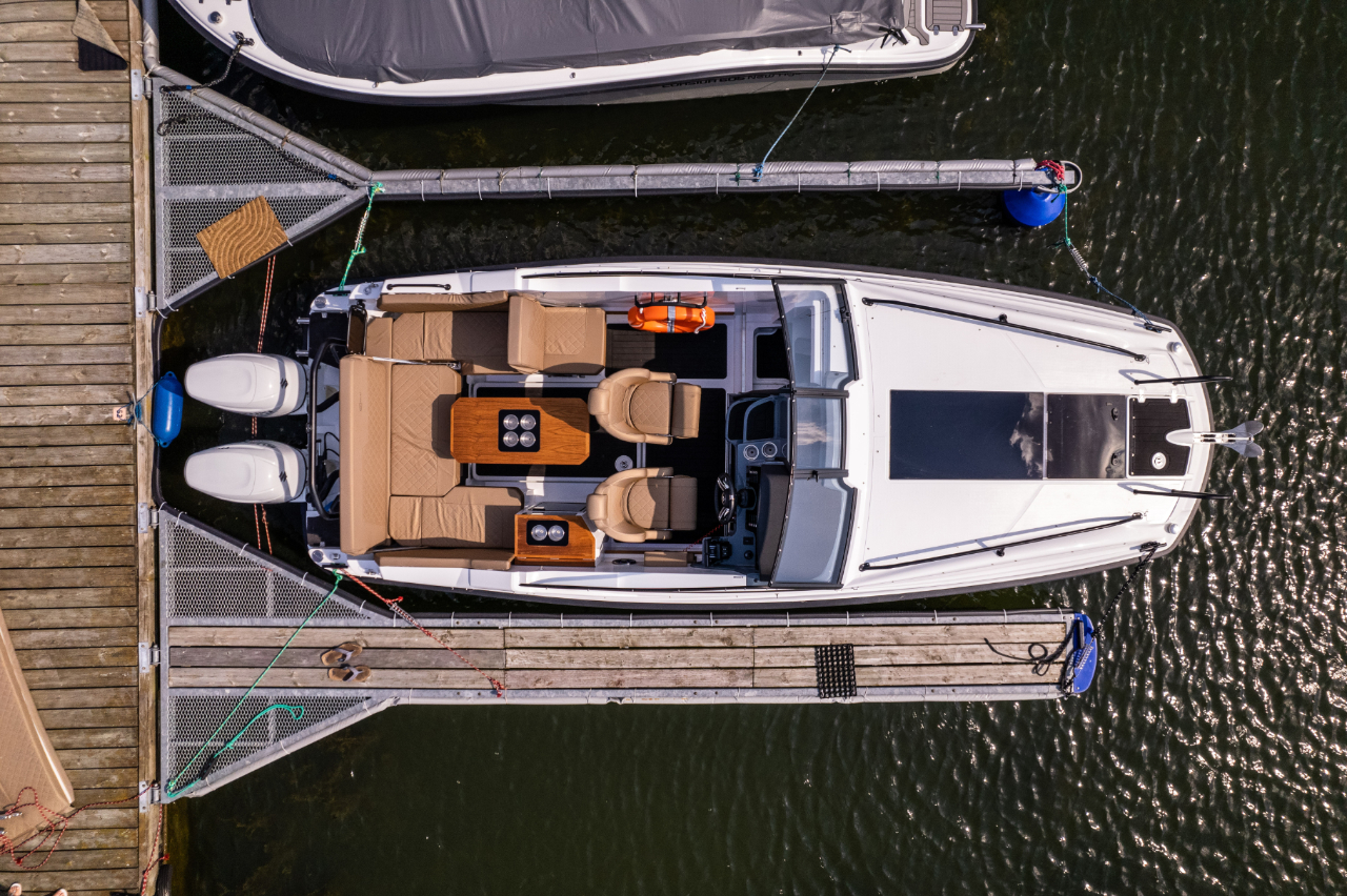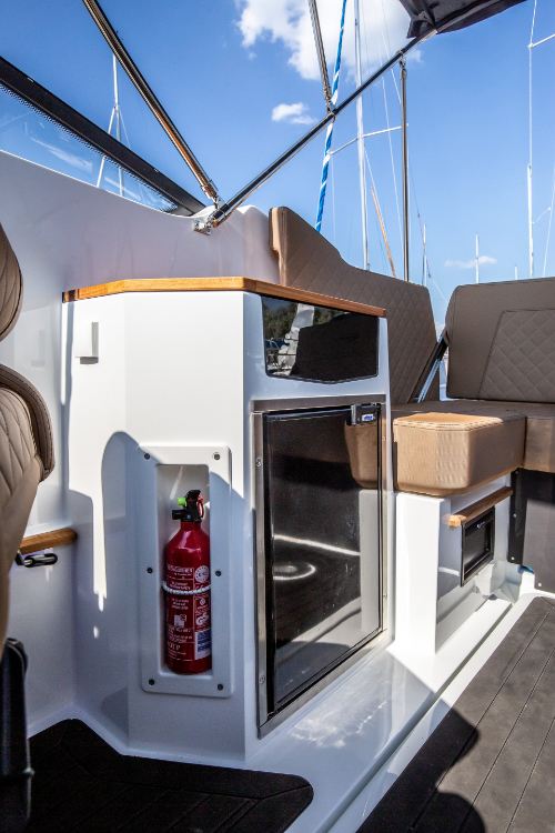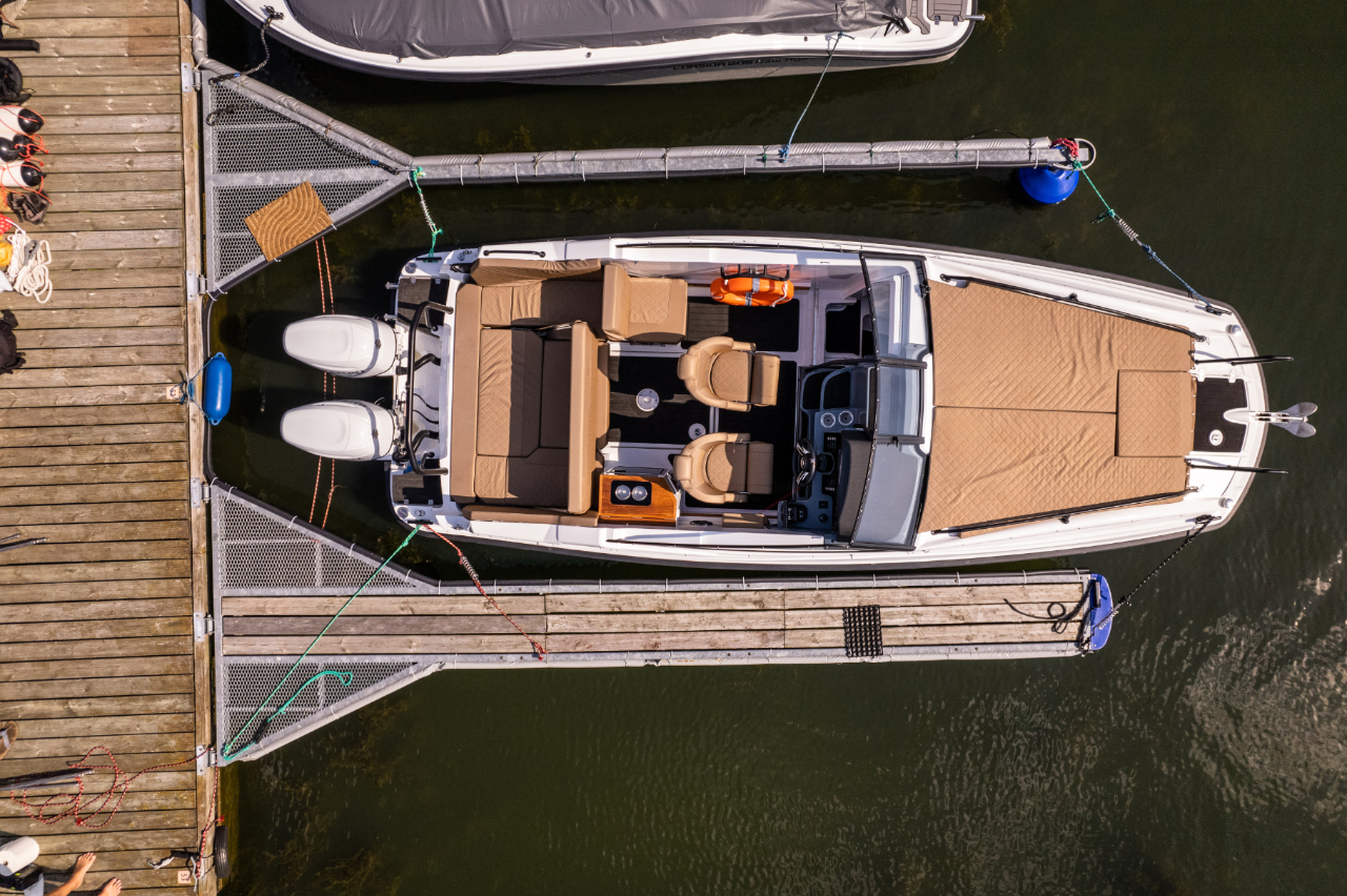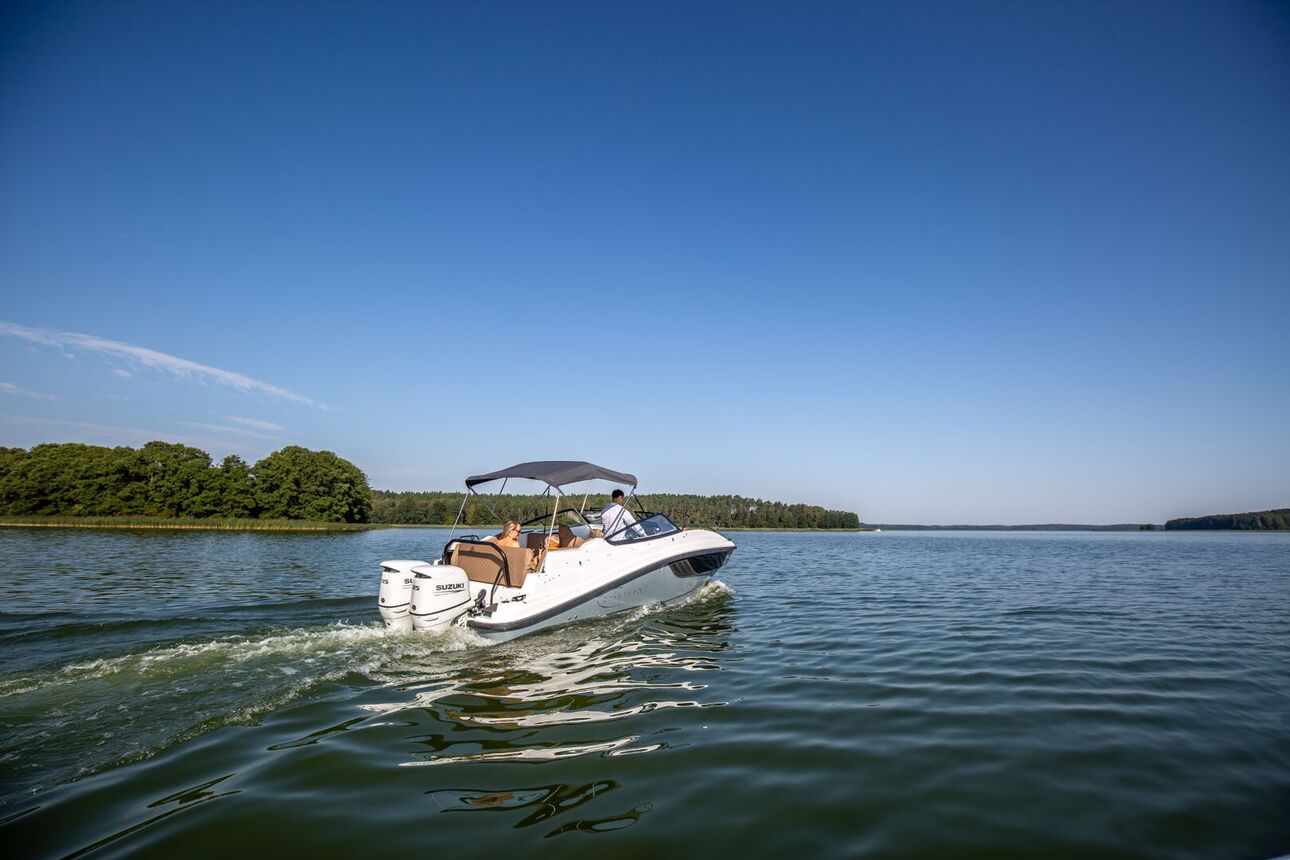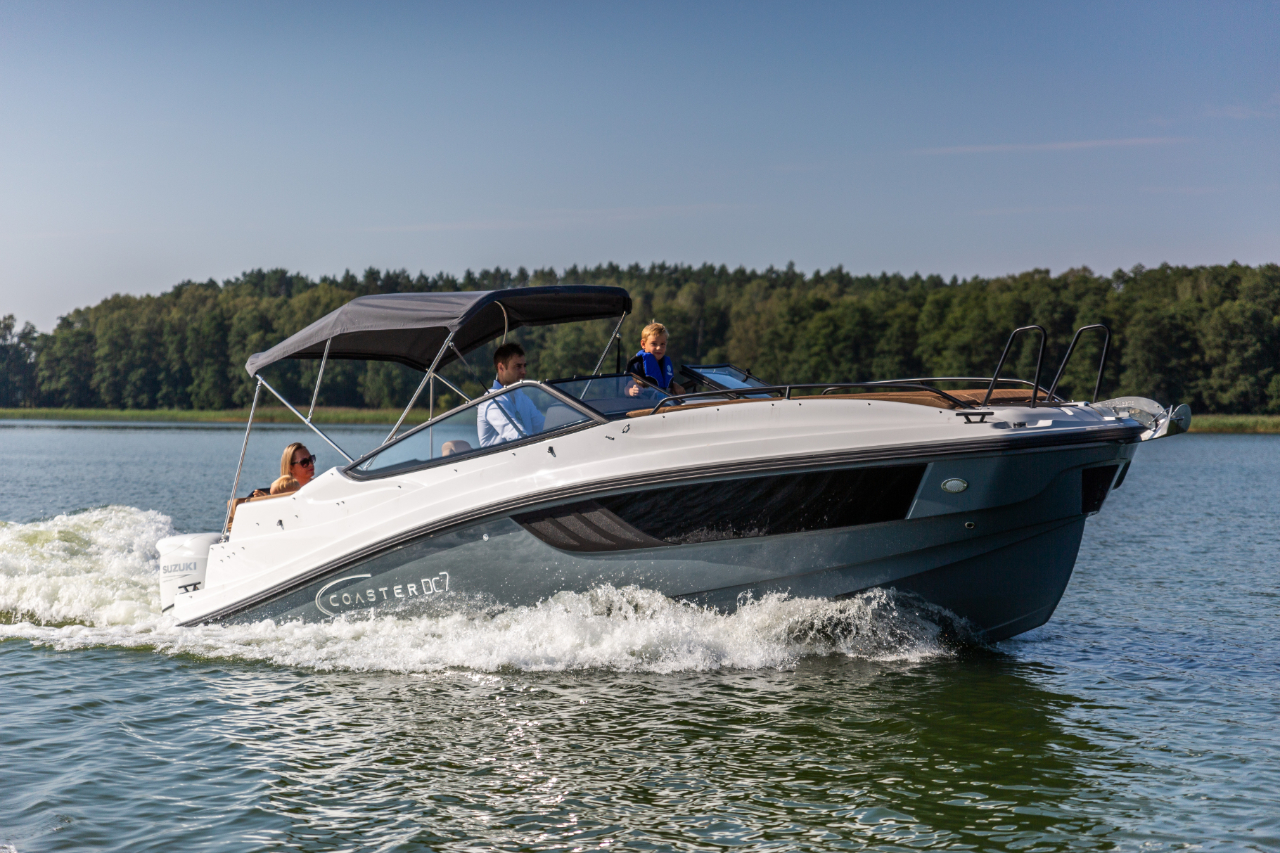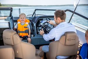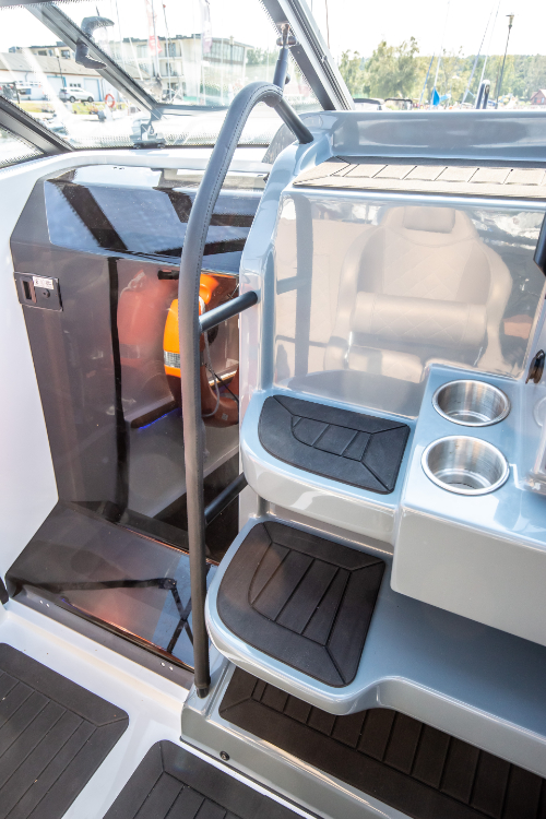 Sein überdurchschnittlich hoher Steuerstand schützt die Passagiere vor Wind und Spritzwasser. Zusätzlich kann es mit einem Verdeck mit Bimini-Top-Option ausgestattet werden, das die Passagiere vor verschiedenen Wetterbedingungen, insbesondere Regen und Sonne, schützt.
