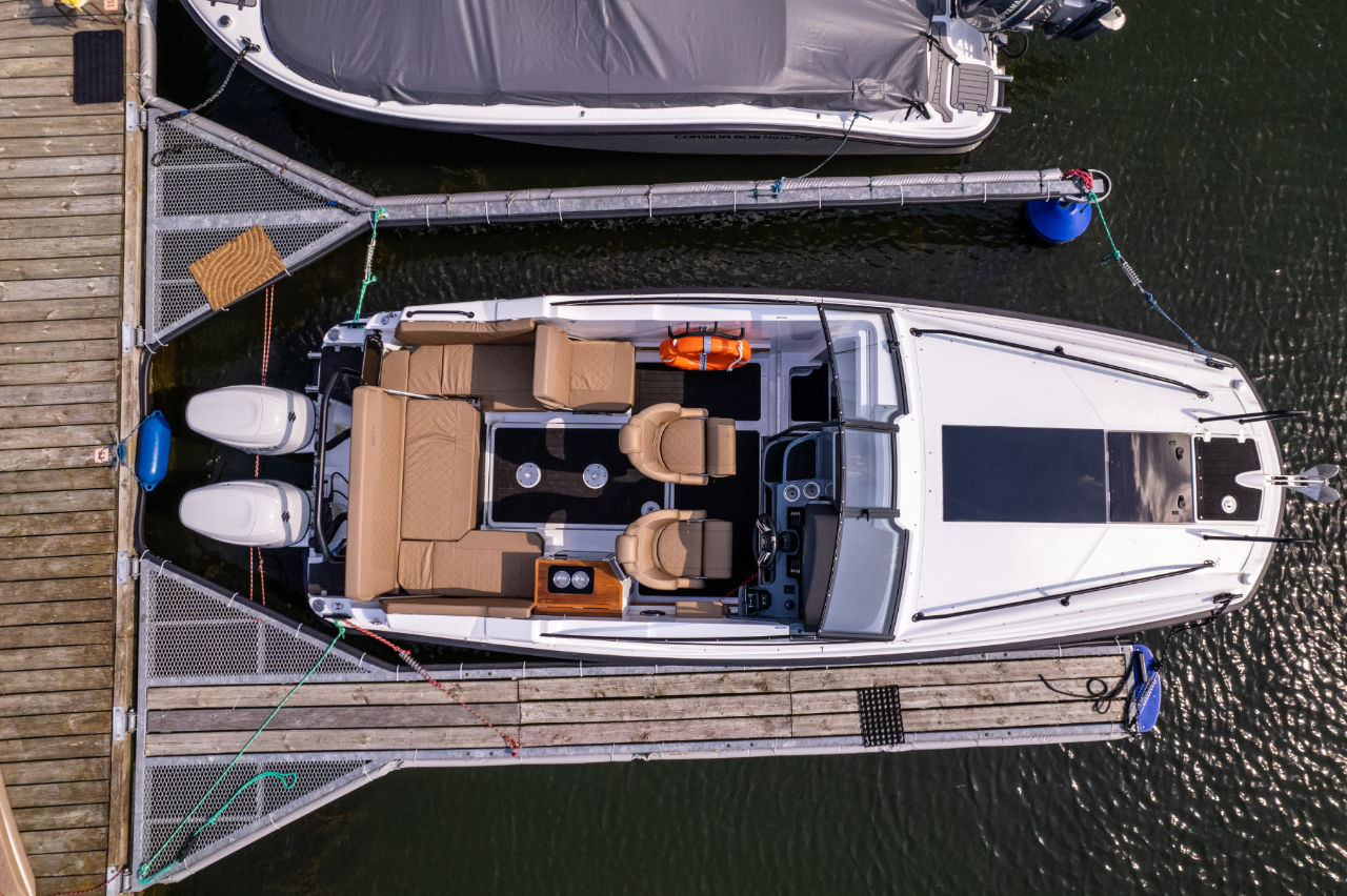 Die DC7 bietet ein völlig neues Bootsdesign aus dem Hause Corsiva Yachting. Sie ist ein Boot, das auch bei hohen Wellen hervorragende und sichere Fahreigenschaften bietet und somit die höchsten Ansprüche unserer Kunden erfüllt. Die neu einwickelte Rumpfform bietet hervorragende Fahreigenschaften die gleichzeitig auch den Spritverbrauch positiv beeinflussen.