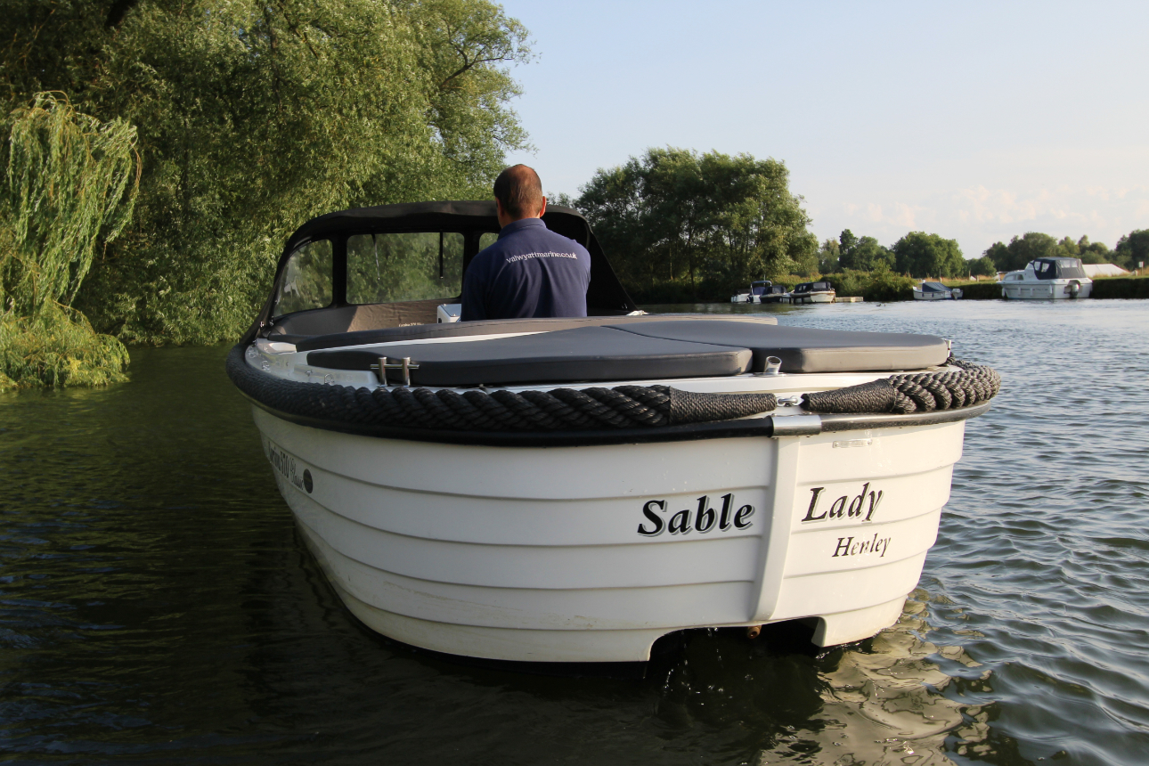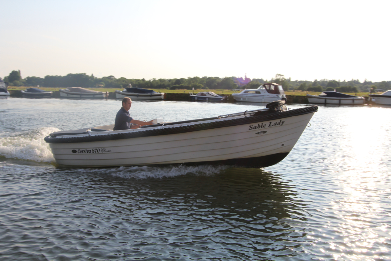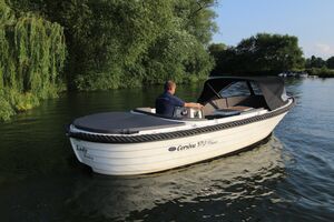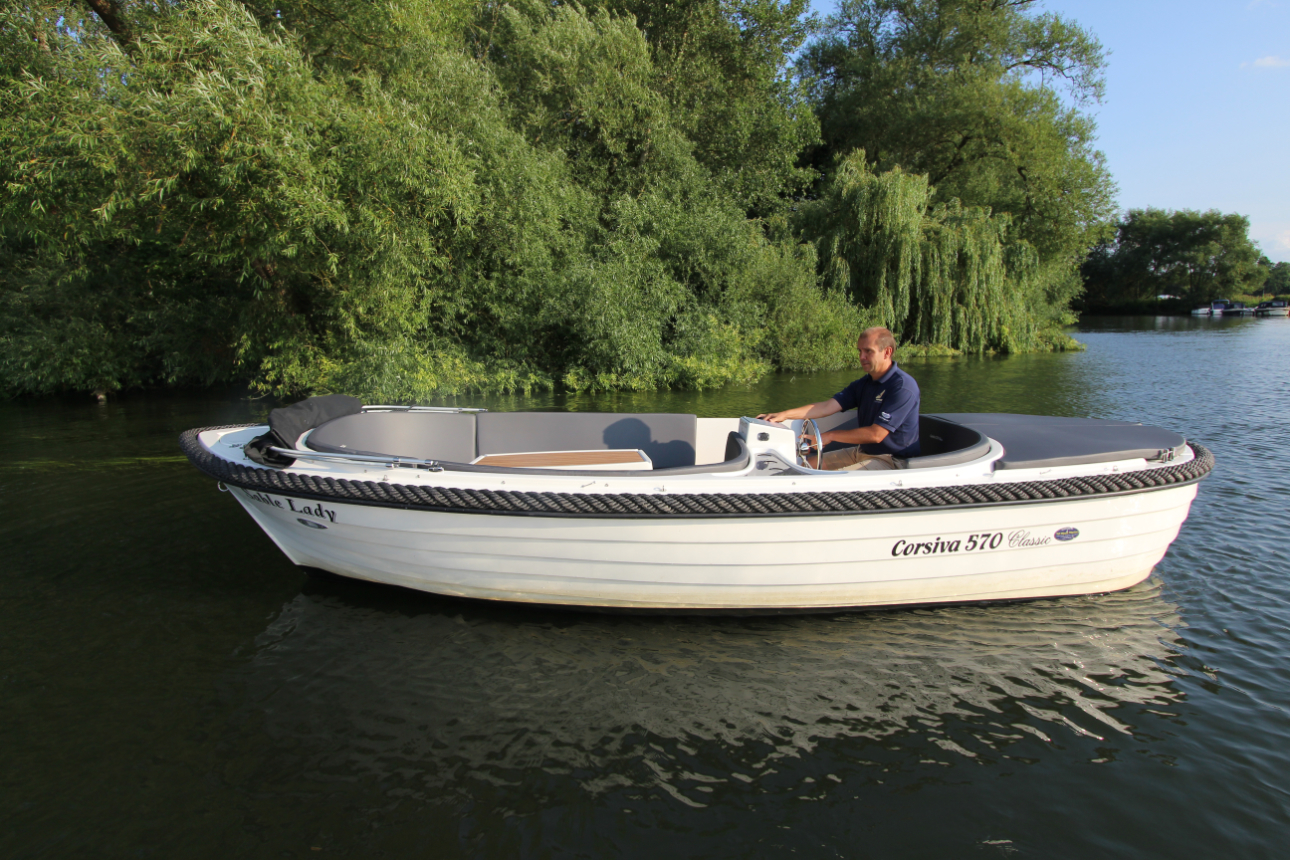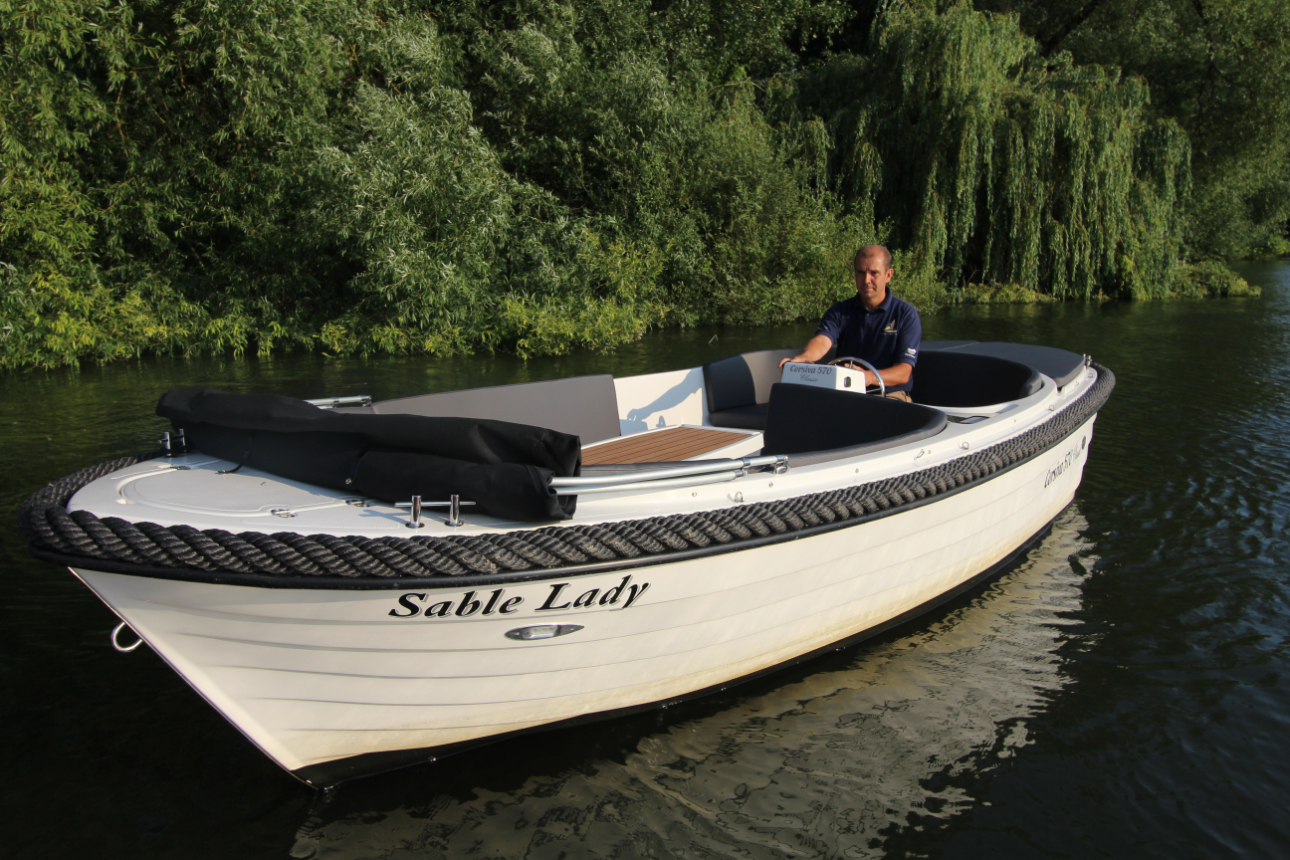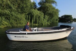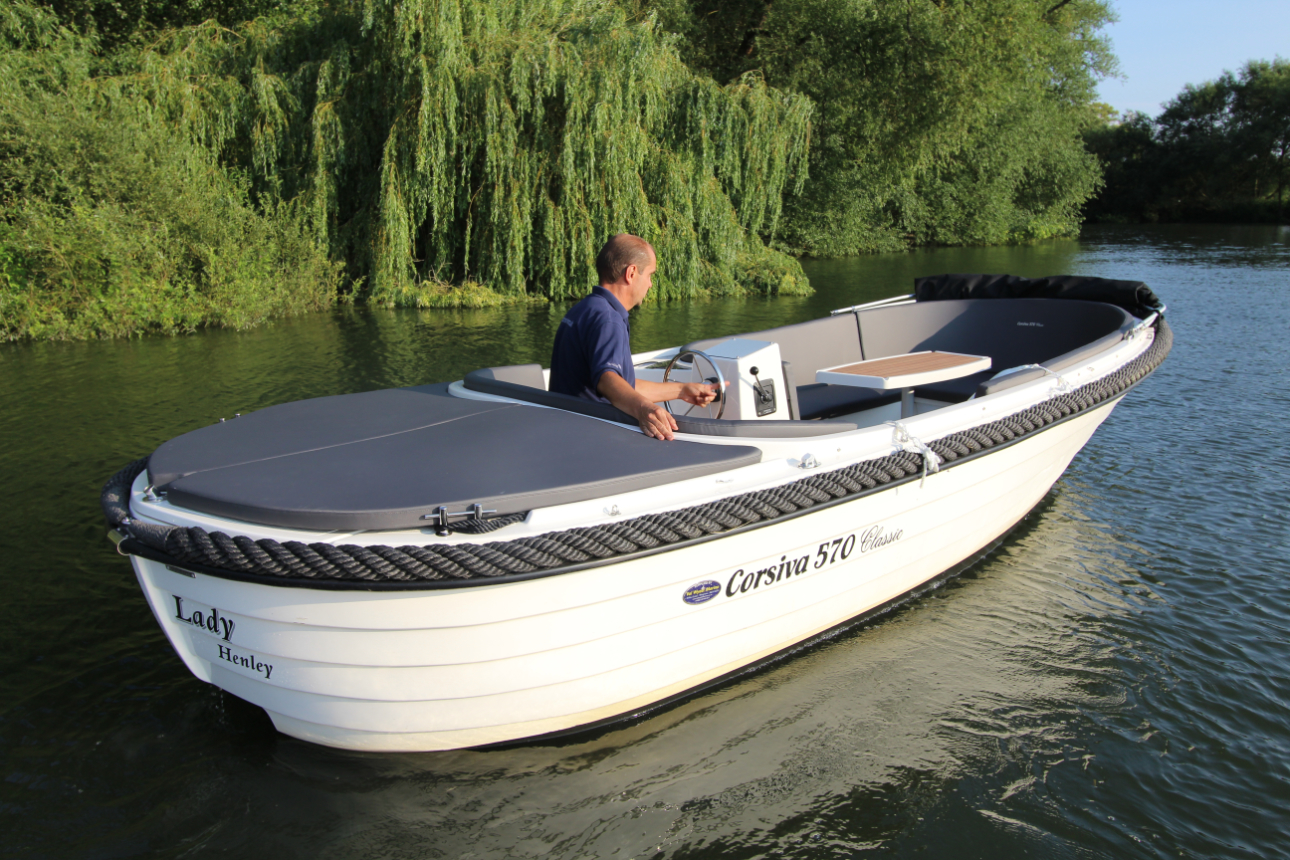 Die Corsiva 570 Classic ist ein wendiges und sehr gut ausgestattetes Boot zu einem attraktiven Preis. Der halbrunde Bugbereich bietet bequem Platz für 5 Erwachsene Personen. Unterhlab der Sitzfläche befinden sich abschließbare Staufächer. Ebenfalls bietet sich hier die Möglichkeit für eine Trockentoilette. Den formschönen ,praktischen Tisch können Sie mit wenigen Handgriffen zur Liegefläche umfunktionieren. Im Heckbereich der 570 Classic gibt es eine komfortable und tiefliegende Sitzfläche mit hoher Rückenlehne. Der Außenbordmotor wird in einem Schacht montiert. Dies minimiert den Geräuschpegel und bietet Platz für eine zusätzliche Liegefläche am Heck des Bootes. Die Rumpffarbe und die Elemente der Ausstattung werden an die Wünsche des Kunden angepasst.
