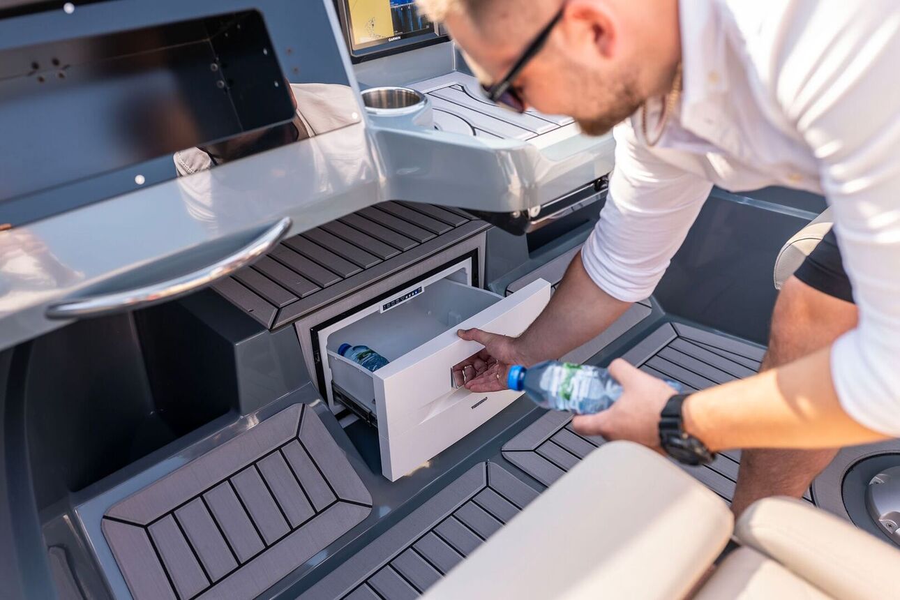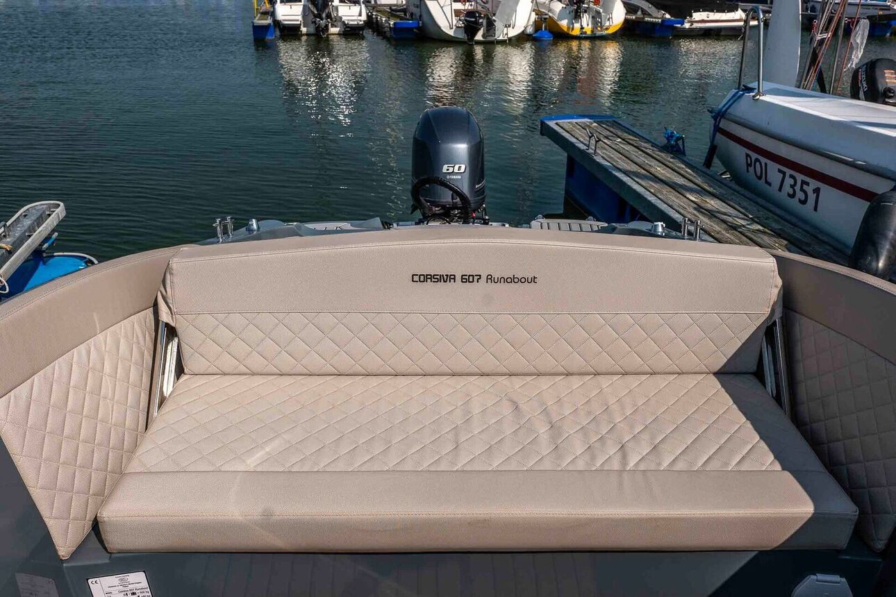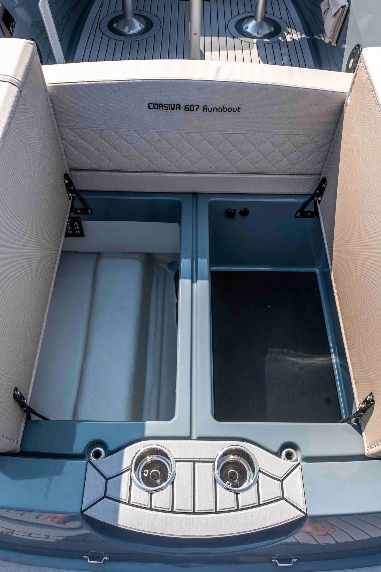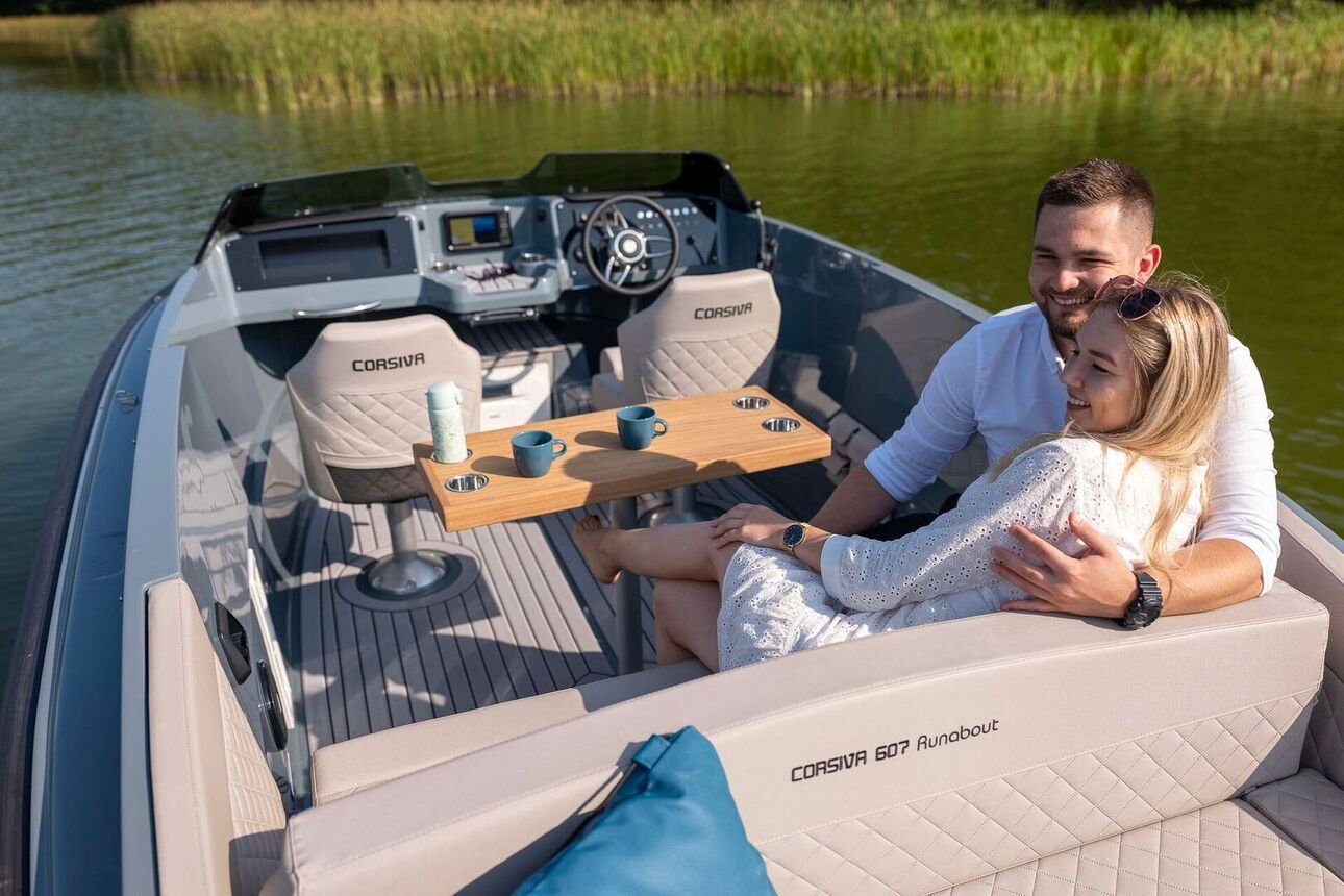 Die Corsiva 607 Runabout überzeugt mit eleganten Silhouette, die Luxus und Leistung perfekt kombiniert. Das moderne Design und die sorgfältige Verarbeitung zeigen das Engagement für die Exzellenz der Marke Corsiva. Im geräumigen Cockpit mit luxuriöser Diamant-Polsterung und ergonomischen Sitzen können Sie die Fahrt in vollen Zügen genießen. Die 607 Runabout ist mit moderner Technik ausgestattet, und bietet viele praktische Aufbewahrungslösungen. Der Heckbereich bietet eine große Liegefläche. Sowohl erfahrene Motorbootbegeisterte als auch Neulinge werden von der Vielseitigkeit beeindruckt sein, die ruhige Ausflüge und aufregende Fahrtenermöglicht. Die Corsiva 607 Runabout lädt ein, die Schönheit der Natur vom Wasser aus zu entdecken und unvergessliche Momente zu schaffen.